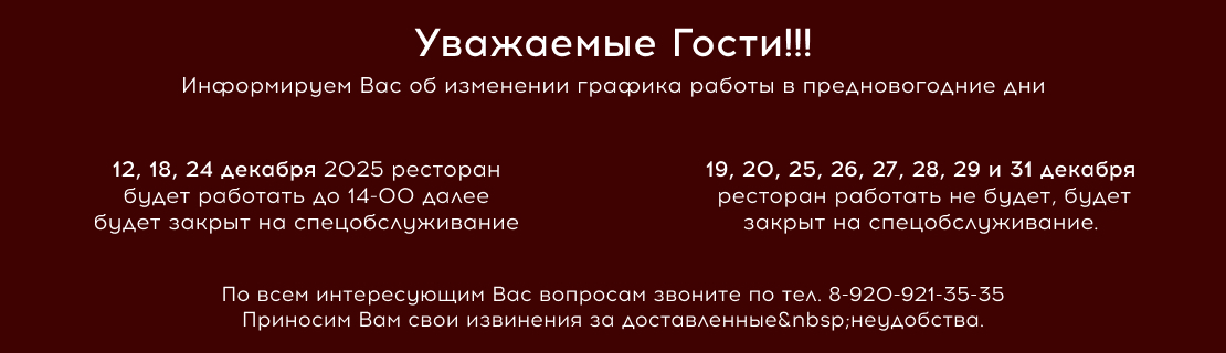 Мы очень рады приветствовать Вас на сайте нашего ресторана!